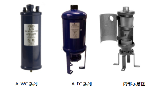 ■ 采用美国Emerson油分离器(A-WC/A-FC系列,具体根据压缩机确定)其特点为: