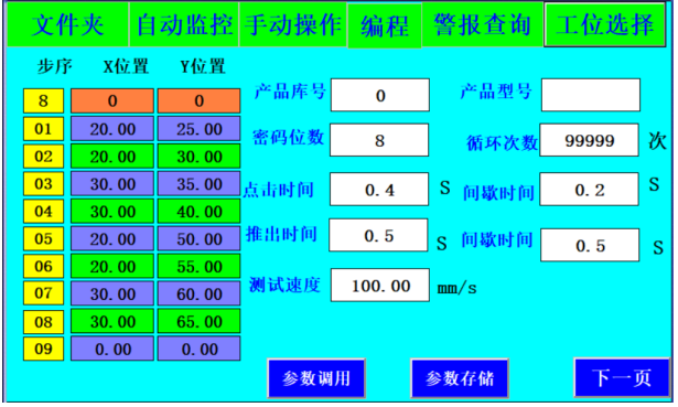 设定密码、测试步序、测试延时等测试参数