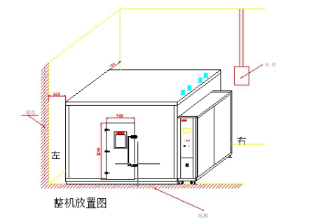 1 | 设备组成 | 1、 设备设计为分体式结构,即在工厂制作成过渡间库板、箱体库板、制冷机组、电控柜等部件,运输至用户现场后进行组装成整体。 2、 保温箱体在现场安装,试验箱体部分安装在室内地面的槽钢底座上; 3、 机组位于箱体右部。 |