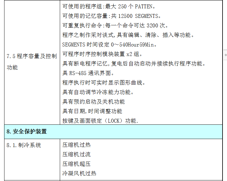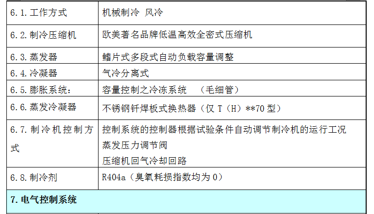6. 控制制冷系统采用冷量需求算法,能合理有效地利用制冷量,有效减少冷热互耗,从而达到控制稳定及节能功效。(传统制作方法:恒定制冷量以加热低消制冷量而恒温)。微电脑伺服控制冷媒流量,节省电力,节能减排。
