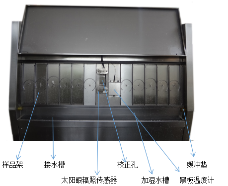 试验设备 | 1.试验箱的结构由耐腐蚀金属材料制成,包含8只荧光紫外灯,盛水盘,试验样品架和温度、时间控制系统及指示器。 2.灯管功率40W,灯管长度1200㎜。试验箱均匀工作区域的范围为1140×500㎜。 3.灯安装成四支一排,分两排安装,每排灯的灯管平行安装,灯的中心距离为70㎜。 4.试验样品固定安装在相距灯表面的最近平行面50㎜的位置,试验样品和它的支架构成箱的内壁,它们的背面曝露于室温的冷却空气中,由于试验样品和箱内空气的温差。使试验样品表面的冷凝阶段产生稳定的凝露条件,试验箱应由底部经箱外壁和试验样品的通道产生自然空气对流。 5.水蒸汽由加热箱低的盛水盘产生,水深不大于25㎜,并有供水自动控制器,盛水盘应定期清洁防止形成水垢。 6.试验箱的温度由固定有宽75㎜、高100㎜、厚2.5㎜.黑色铝板(黑板)上的传感器进行测量,该黑板应放置于曝露试验的中心区域,温度计的测量范围为30~80℃,容差为±1℃.光照和冷凝阶段的控制应单独进行,冷凝阶段由加热水温进行控制。 7.试验箱应放置于温度为15~35℃的试验室内,距离墙300㎜,并应防止其它热源的影响,试验室内的空气不应强烈的流通,以免影响光照和凝露条件。 |