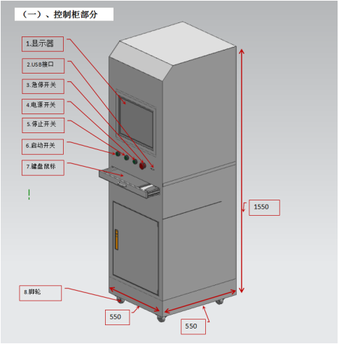 12 | 机台尺寸 | 工位尺寸(W*D*H)=1060*960*2350,控制柜(W*D*H)=550*550*1550 |