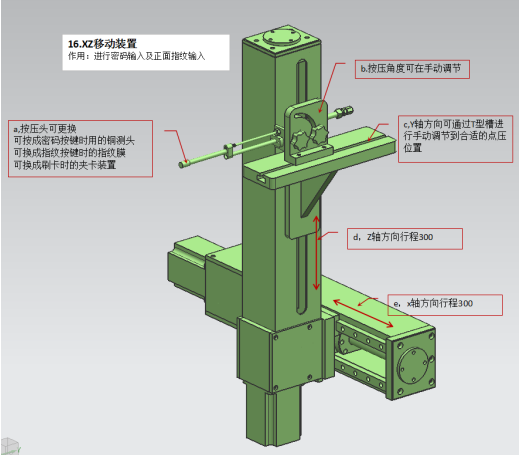 软件上,采用电脑+显示器输入控制,以电脑核心+专用运动控制板卡进行编程,可自由选择测试项目,功能强大,通讯能力强,操作简单易懂,工况显示清楚了然,可设置调节每个工况的相应参数,如测试速度,测试时间,延时时间等等。设备可与蓝牙电子锁建立双向通讯,实现开锁动作,同时,此设备还可以测试电池放电状态,并将电流电压监控值生成曲线和报表。控制上电脑显示器输入控制,操作方便,简单。此设备将多种设备集于一身,完成一系列的开锁动作,节省人力,提高测试效率,同时也更加全面地对电子锁的性能做了立体分析,可靠性强.
